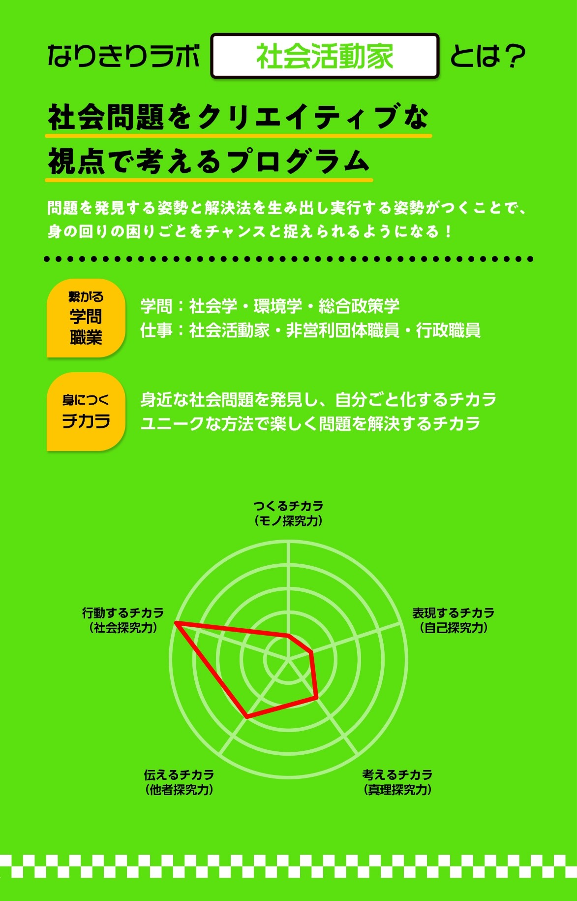 ゴミのポイ捨て、いじめ、高齢化、過労・・・私たちが住む街には、さまざまな問題が山積しています。いわゆる社会問題に自分ごととして立ち向かい、あっと驚くユニークな方法で解決するのが、「社会活動家」です。