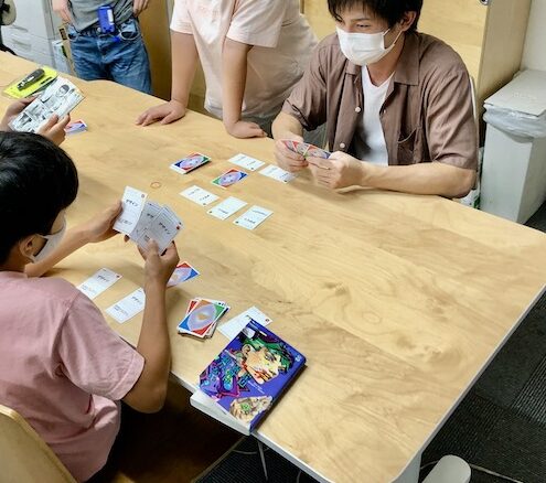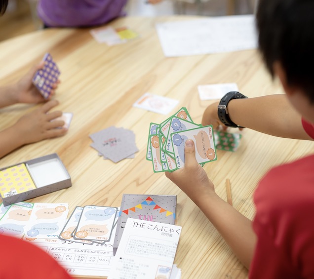 身の回りにあるゲームに触れて分析するところからスタートするこのプログラムでは、いつもの遊ぶ側からつくる側へと立場を変えることで、コンセプトを考えたりルールを設定したりと、プロの視点・考えを手に入れます。そうしてつくるのは、自分の好きなことを表現したオリジナルのカードゲーム。