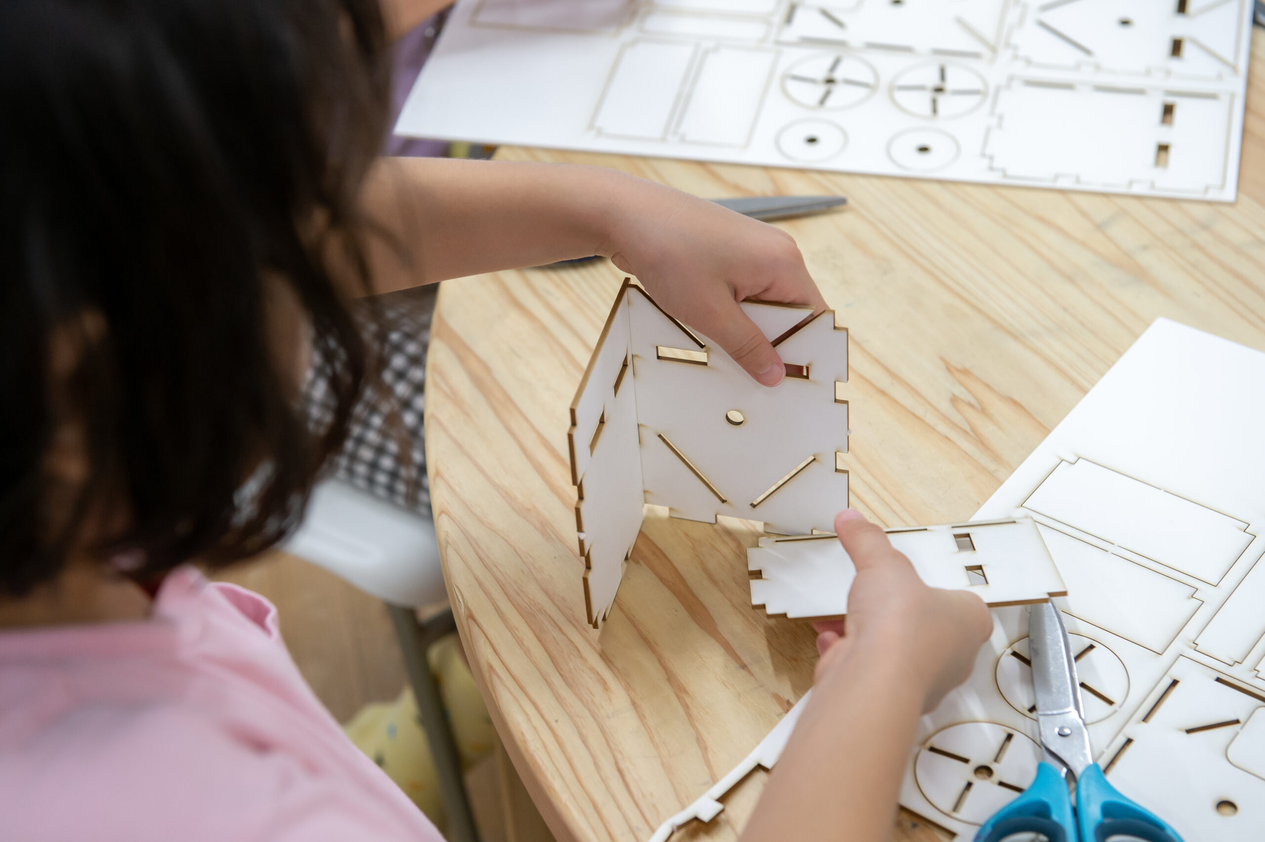 大切なのは、手を動かしながら、試行錯誤を重ねて仕組みを設計すること。このプログラムでは、機械の鍵となる動きや構造を、ダンボールのような身近な素材を使っていかに再現するかということを重視しています。